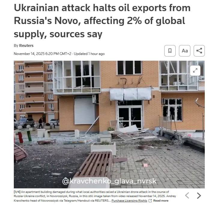 Видання пише, що атака на нафтовий термінал призупинив щоденний експорт нафти на 2,2 млн барелів. Що еквівалентно або 2% світових поставок.