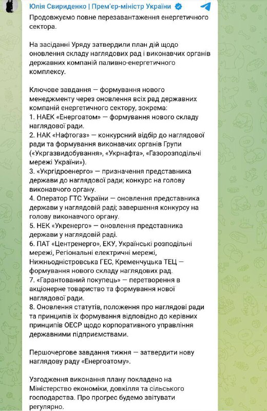 ❗️Уряд затвердив план дій щодо оновлення наглядових рад і виконавчих органів енергокомпаній, – СвириденкоЗа словами прем’єр-міністра, першочергова задача цього тижня – затвердити нову наглядову раду “Енергоатому”. Координує виконання цього плану Міністерство економіки, довкілля та сільського господарства України. 2025-11-18T11:23:02+00:00 View Source Доєднайся на Telegram канал https://t.me/golostoday Навігація записів Рустем Умеров вернется в Украину. Он прибудет из командировки уже послезавтра, 2… Треба заблокувати Телеграм, інакше тут України не буде, — мовна омбудсменка Іван…